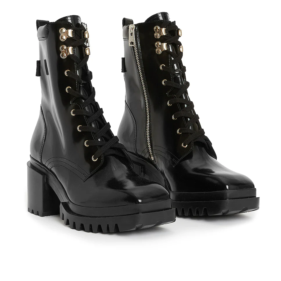 Now, let’s talk footwear – because every stride should be a power move. The AllSaints Indigo Boot in Black Shine effortlessly merges comfort and style, ensuring you’re ready to conquer the boardroom or happy hour with equal flair.